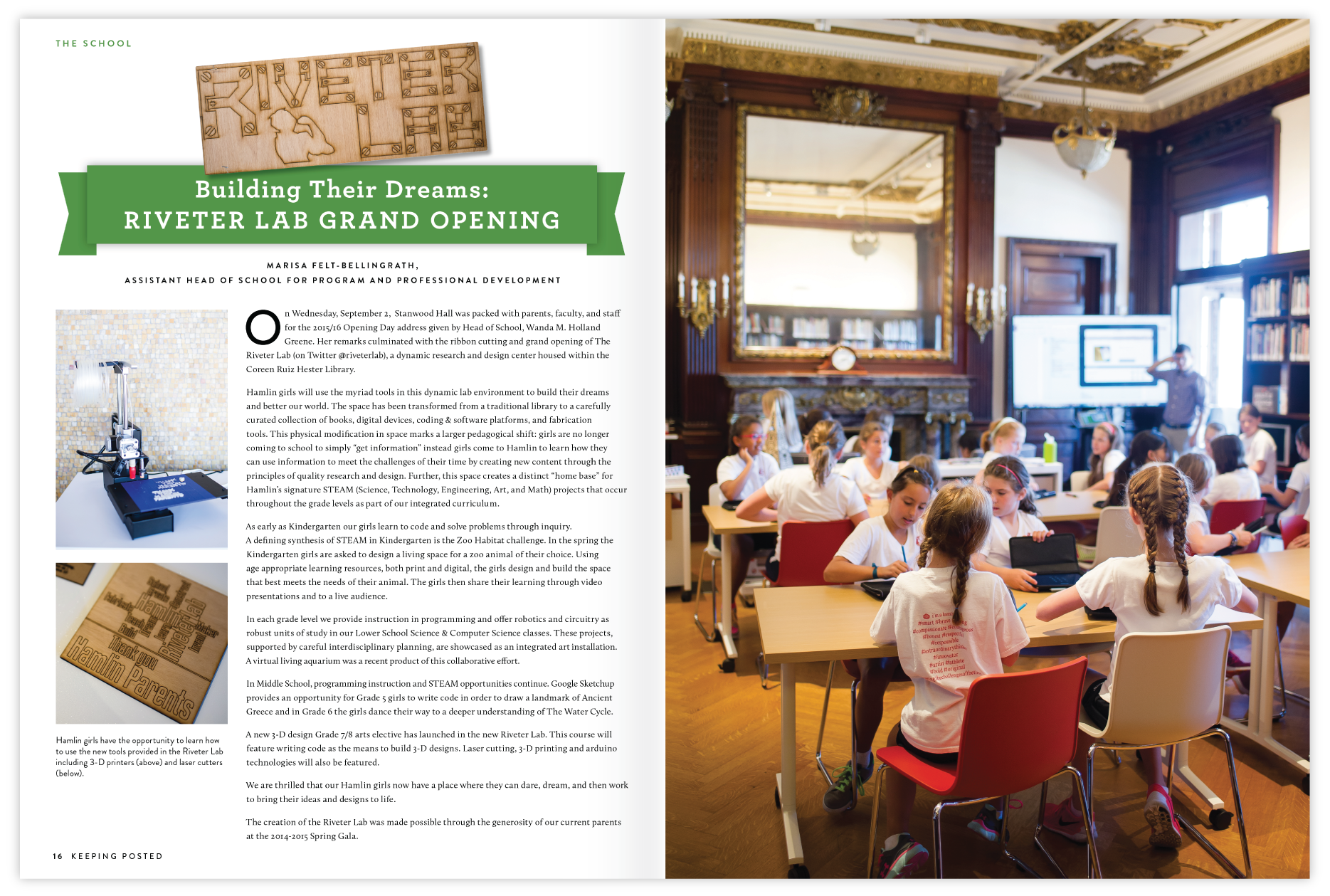 The Hamlin School educates girls to meet the challenges of their time and inspires them to become extraordinary thinkers and innovators, courageous leaders, and women of integrity. Keeping Posted is a publication for families, friends, and alumnae.
