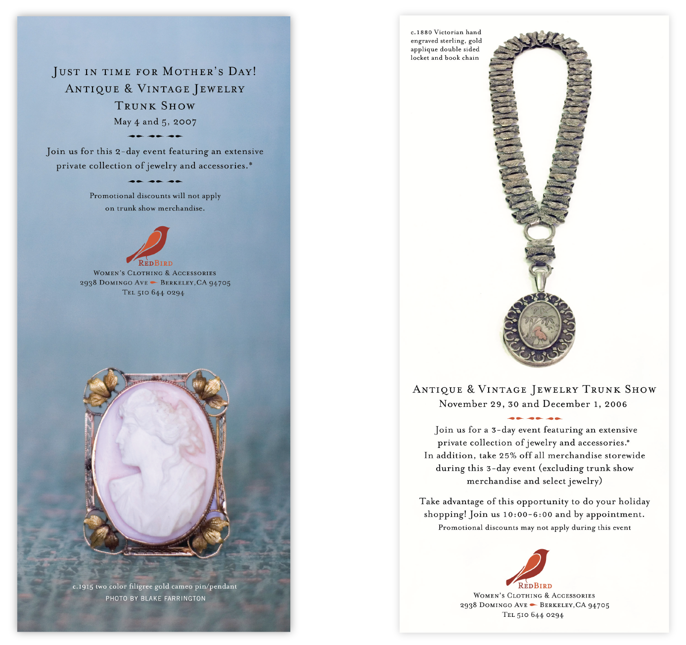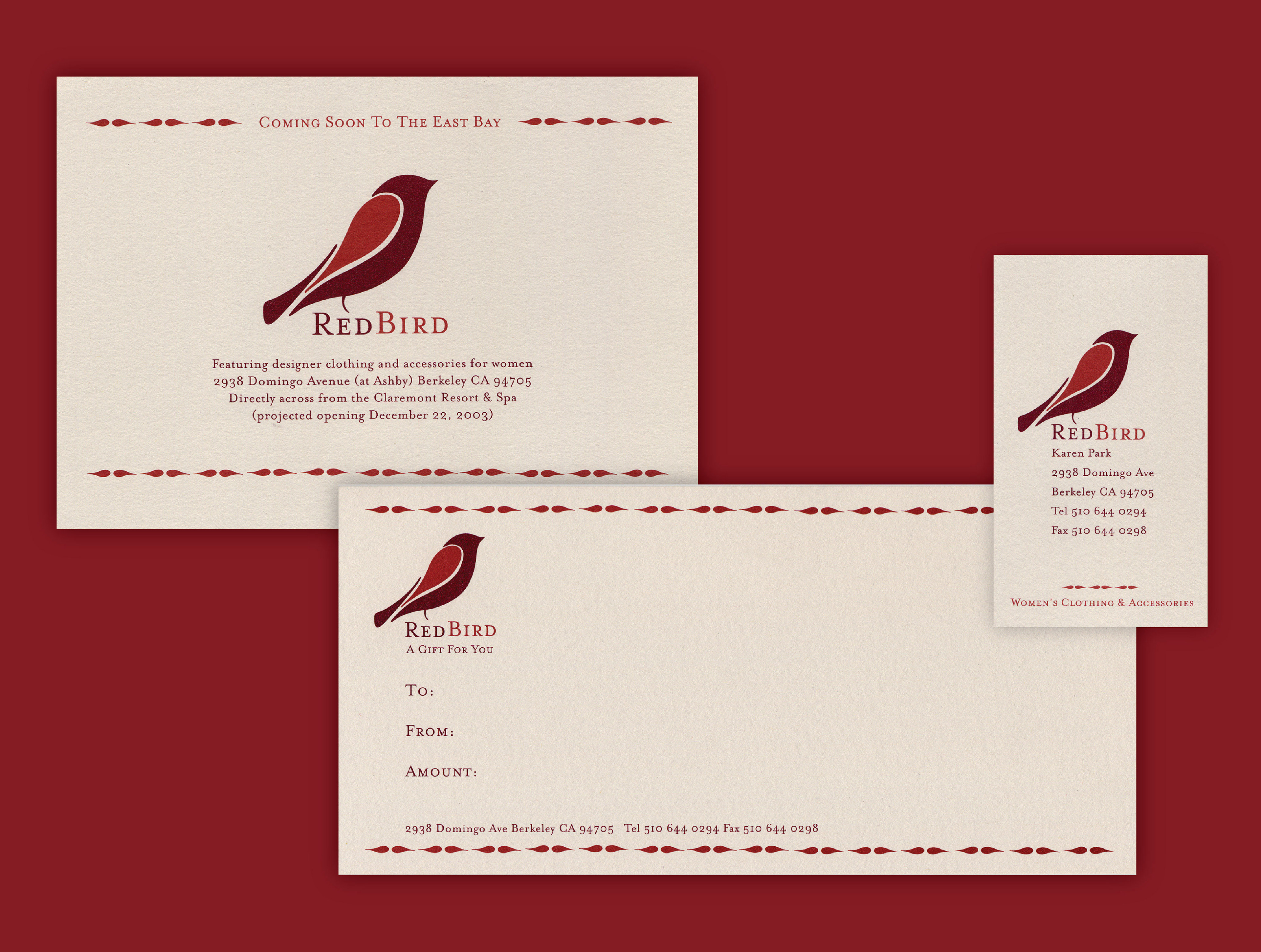Identity and print design for an upscale boutique catering to women of Berkeley and the east bay of the San Francisco metropolitan area. Identity and collateral materials exhibit elegance and sophistication.