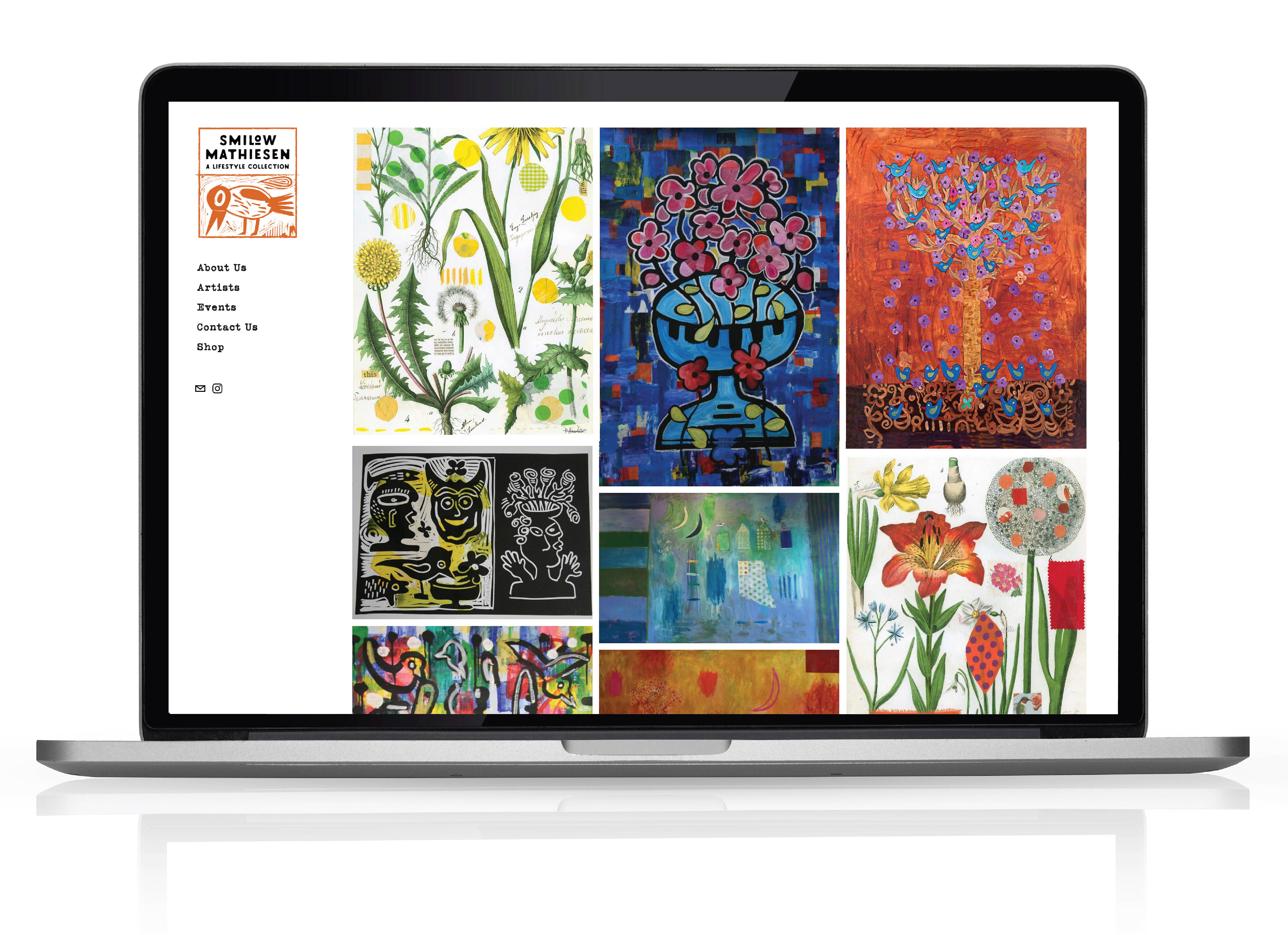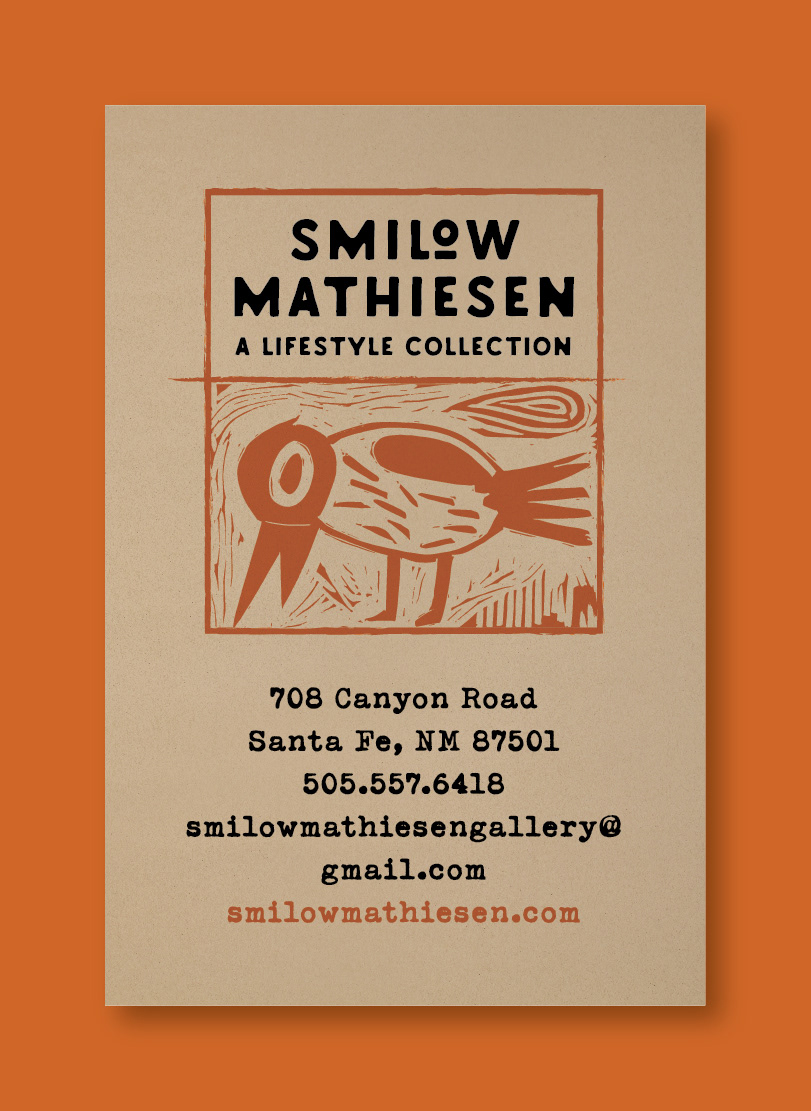 {Illustration: Gert Mathiesen} Identity for Smilow Mathiesen: A Lifestyle Collection, a Santa Fe gallery featuring the art of Pam Smilow and the late Gert Mathiesen.